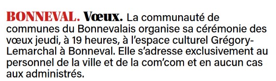Information erratum - Les voeux du 22 janvier sont réservés au personnel de la ville et de la CDC.