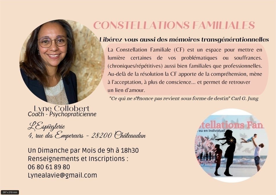 La Constellation Familiale est un espace pour mettre en lumière certaines de vos problématiques et souffrances aussi bien familiales que professionnelles. Au-delà de la résolution, elle apporte de la compréhension, mène à l'acceptation, à plus de conscience ... et permet de retrouver un lien d'amour.